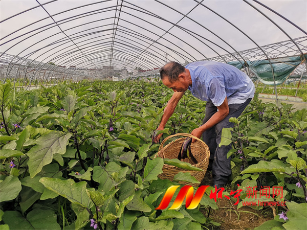 近日,黄龙镇杨林联合党委蔬菜种植基地,50多亩的辣椒、茄子等蔬菜郁郁葱葱、长势良好,青椒、茄子等挂满枝头,喜获丰收,村民穿梭在田间采摘,现场一片繁忙。