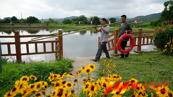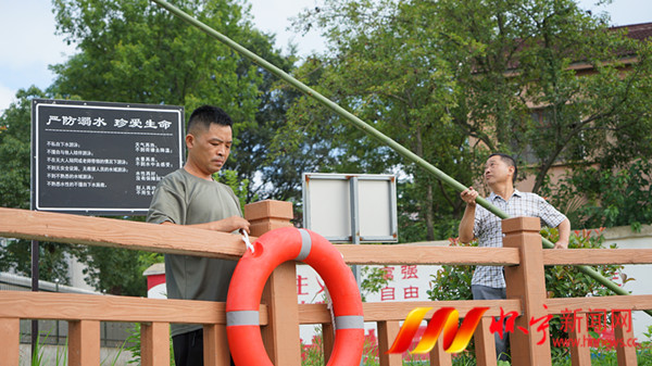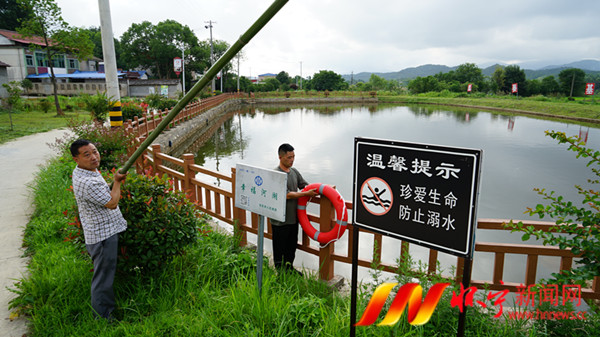 6月20日,凉亭乡双岭村村干把“竹子救生杆”设置在水塘边显眼地方。暑假来临,游泳备受少年儿童的喜爱,但这也带来了安全隐患,凉亭乡在全乡范围内展开“救生竹竿防溺水”安置行动,将自制竹子救生杆与警示牌安置到水塘、水渠、水库等各种水域,织密织牢防溺水“安全网”。檀志扬 何宏峰 摄