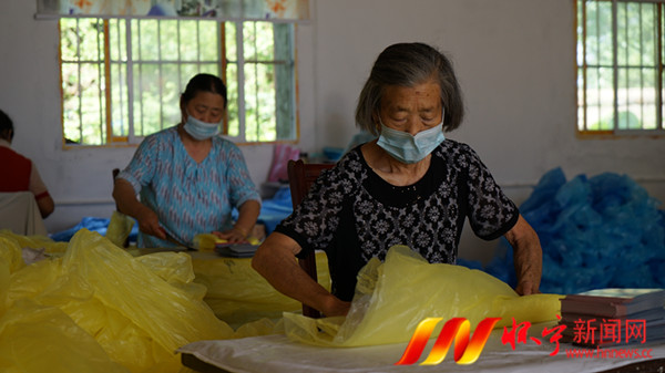 6月22日,凉亭乡金鸡村方湖组65岁村民陈少芳,和姐妹们在家门口一家雨衣厂制作雨衣。县妇联结合农村实际情况,依托“妇女种植养殖专业合作社”和“巾帼创业示范基地”等,引导农村留守妇女在家门口当起“上班族”,在照顾了家庭的同时又增加了收入,成为农村致富增收的主力军。檀志扬 何宏峰 摄