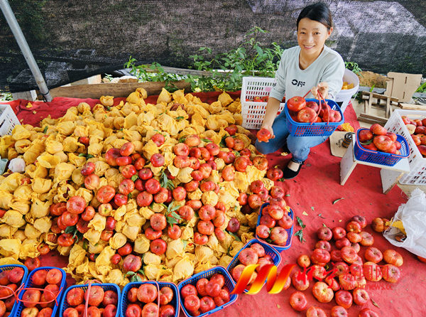“香又甜,真好吃。”许多游客提着篮子穿梭于桃林之间,一边摘桃子,一边欣赏景色、打卡拍照,乐在其中。