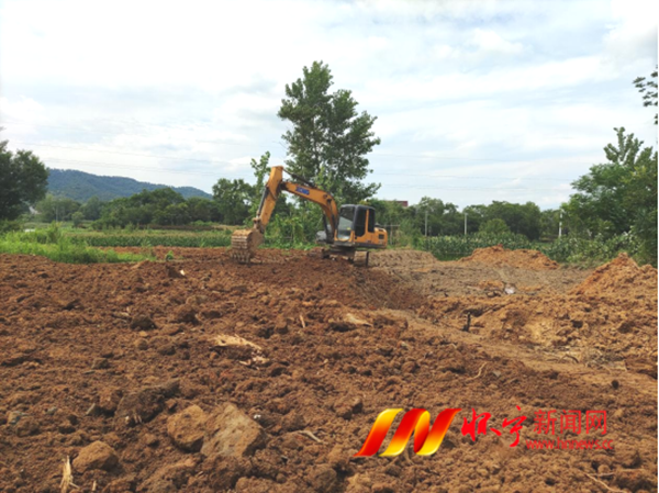 本网讯 7月6日,在江镇镇模范村中和组一闲置地块,挖机正在对该处土地进行清表翻土作业,不一会儿,原本荒芜的撂荒地就变成了生机满满的可耕地。