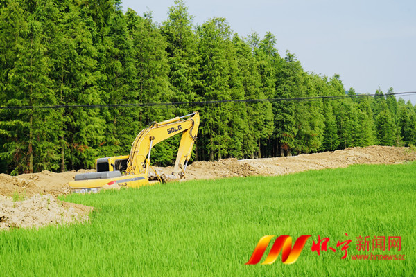 7月16日,挖掘机在雷埠乡金鸡岭水库红杉林景区修建道路和停车场。雷埠乡红杉林湖面面积500亩,景区内自然风光优美,水杉成片,每年秋冬时节吸引众多游客前来“打卡”。
