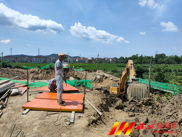 本网讯 近日,连续高温酷暑天气,腊树镇农村公路危桥改造工作推进如火如荼。在腊树镇八一村同发桥危桥改造现场,施工人员、监理人员、机械操作手等冒高温、战酷暑,争分夺秒赶进度。