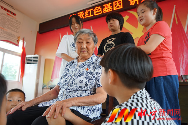 7月26日,八一节前夕,石牌镇庆洲村第二届十女民兵班班长、87岁的檀小莲老人在向孩子们讲述革命故事。1958年9月,石牌镇庆洲村成立了“十女民兵班”。1960年,第二届班长檀晓莲代表全班受到了毛主席的亲切接见。十女民兵班还被国务院授予“十女神枪手”荣誉称号。檀志扬 昂海波 摄