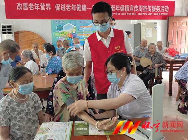 本网讯 7月26日下午,清河乡计生协联合乡老龄办、文化站和卫生院在辖区颐年养老服务中心开展以“改善老年营养,促进老年健康”为主题的老年健康宣传周活动,为老人们宣传老年健康相关政策、健康科普知识、营养健康知识、“养老防诈”知识和健康体检、中医义诊等服务。