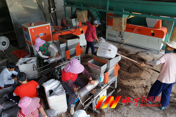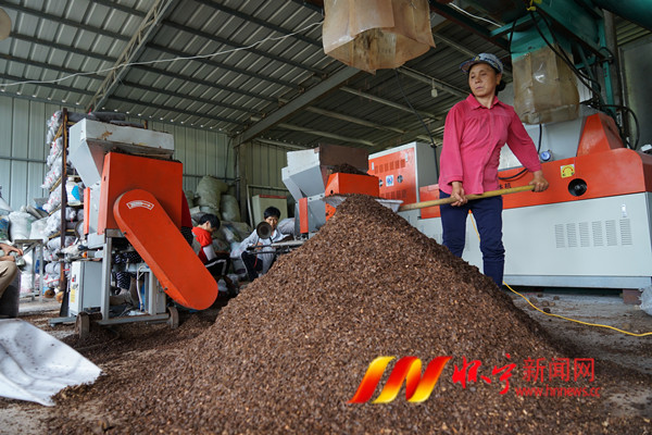 江镇镇新合村该村大力发展木耳产业,今年预计生产木耳菌棒70万棒、收获干木耳1万公斤,村级集体经济收入有望超过一百万元,同时带动本上百名本地村民在家门口就业增收。图为8月1日,村民在制作菌棒。檀志扬 刘庆生 摄