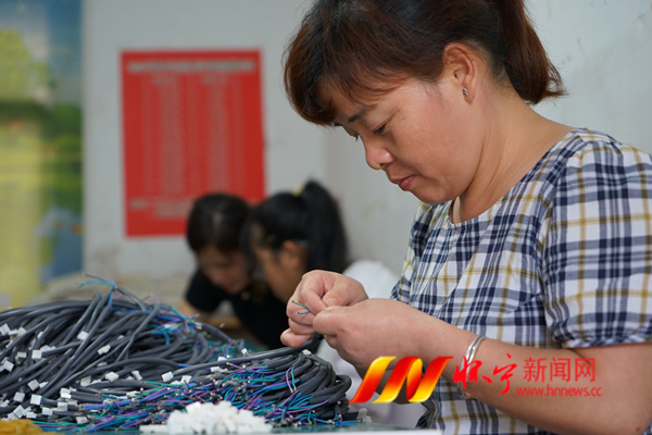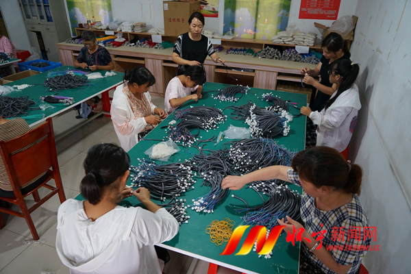 8月4日,清河乡金山村村民在手工制作电子产品零部件。为帮助留守妇女既能照顾家庭,又能在家门口实现增收,金山村今年6月份新引进来料线束加工项目,安排本地几十名妇女在家门口上班。近年来,怀宁县通过企业下乡、车间到村、岗位到人等办法,建起一大批农村留守人员在家门口看得见、进得去、稳得住、能增收的就业小车间。檀志扬 陈金霞 摄