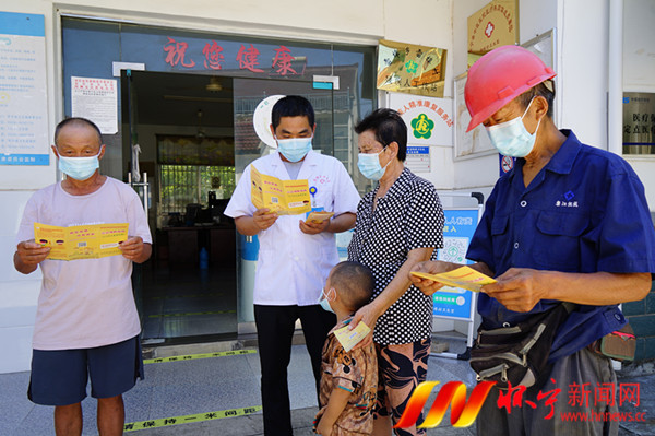 8月22日,雷埠乡卫生院医生向群众宣传疫情防控知识,增强广大村民的疫情防控意识,引导广大村民落实疫情防控措施。我县扎实抓好疫情防控工作,着力加强疫情防控宣传,确保“到户到人”、“入户入心”。檀志扬 邱乾龙 摄