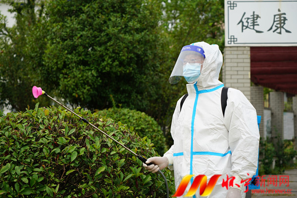 8月29日,江镇镇工作人员穿好防护服,戴上口罩和护目镜,背上数十斤的消毒设备,在喷洒消毒。我县做好疫情防控消杀工作,防止和阻断病毒传播,切实保障群众的身体健康。檀志扬 刘庆生 摄