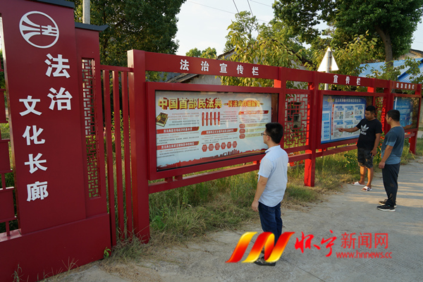 9月12日,村民在茶岭镇年丰村法治文化广场观看法制宣传栏。怀宁县积极推进基层法治文化建设,先后在城乡建成一大批法治文化公园、法治文化广场和法律图书角,将法治文化的宣传触角延伸到千家万户,渗透到群众的生产生活中,使基层普法活动有了新载体,营造出法治文化润民心、和谐稳定大家庭的良好氛围。 檀志扬 曹晓春 摄