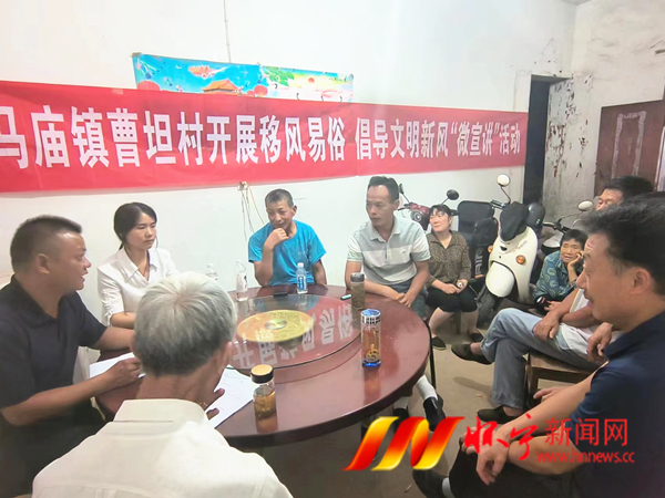 “现在都讲移风易俗、丧事简办,以前的封建迷信、大操大办,我们都要摒弃、都要反对……”9月19日晚,在马庙镇曹坦村兴胜组,一场别开生面的移风易俗、倡导文明新风“微宣讲”正在开讲。曹坦村党支部书记刘云生用群众语言、土话俚语,将“书面语”转化为“家常话”,引得现场10余名群众听得津津有味、聚精会神。