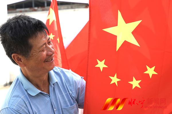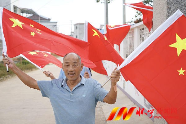 村民挂国旗庆国庆