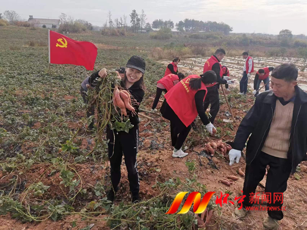 10月25日,在马庙镇鹿苑村,党员志愿者、村两委、农户们正在地里收获红薯。看到个头好、胖嘟嘟的红薯,村民脸上都笑开了花,感受到了丰收的喜悦。据了解,位于鹿苑村桂花园组的200亩地原来是一片荒地,村两委积极谋划,于2022年初流转下来开始种植红薯发展村集体经济。预计今年每亩地能产红薯3000斤,为村集体经济增收30万元。丁浩浩 摄