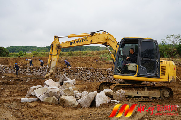 10月26日,工人在雷埠乡施工水利工程。据悉,雷埠乡太阳河水利项目总投资2000多万元,工期36个月,项目建成后,可防止河岸垮塌和洪水冲刷,增强金鸡岭水库泄洪能力,保障圩内5000余亩良田受益。檀志扬 邱乾龙 摄