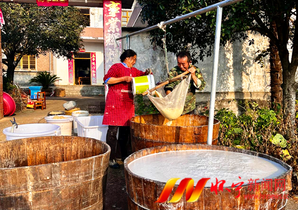 本网讯 连日来,秀山乡章岭村迎来红薯粉制作“黄金季”,当地群众抢抓晴好天气,家家户户赶制红薯粉,全力供应冬季市场。