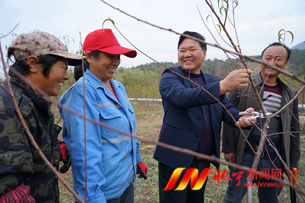 11月29日,月山镇复兴村党支部书记查正严在果园向村民讲解桃树剪枝技术。近年来,我县在实施乡村振兴战略中,坚持把政治素质好、文化程度高、懂经营、会管理、有闯劲、能够带领群众致富的优秀人才选拔或调整充实到村干部队伍中,着力提升基层组织带领群众共同致富的能力,让一大批优秀致富带头人如“头雁”领飞,成为乡村振兴的开路先锋。檀志扬 高啸 摄