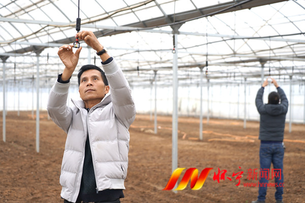 12月5日,雷埠乡腾云村种粮大户郝生红在刚刚栽种下去的马铃薯大棚里检查滴灌喷头,大棚密封等情况。连日来,我县出现持续低温霜冻天气,给农业生产带来不利影响,我县农技人员第一时间深入农业生产一线,指导农户全面开展防寒防冻工作。檀志扬 邱乾龙 摄