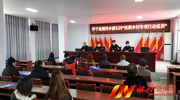 本网讯 为进一步提升基层群众法治意识和法治素养,营造全民学法的浓厚法治氛围。近日,清河乡司法所联合乡派出所、综治办到硖石村开展法润乡村专项行动巡讲活动。