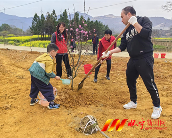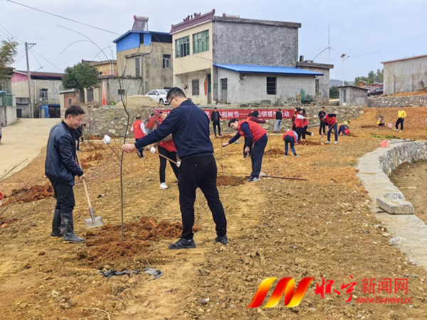 活动现场,40多名党员、团员、学雷锋志愿者,每两三人一组,挖穴、种树、浇水,大家挥锹铲土,干劲十足,栽下一棵棵小树苗。其中80%的果树苗木被栽种在村民的房前屋后。月山镇向荣村党支部书记徐翔介绍,当前正是苗木移栽的最好时节。我们今天在美丽中心村见缝插针植树,栽种的树木主要有桃树,梨树,柿子等经济绿化苗木,既能提升乡村颜值,又能带来经济效益。