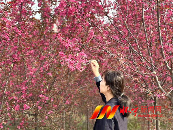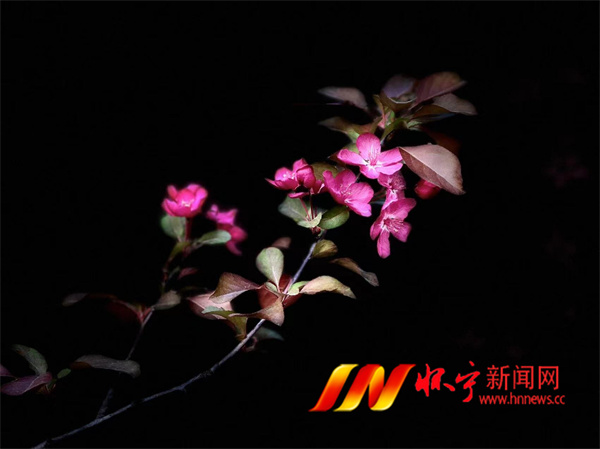 只恐夜深花睡去,故烧高烛照红妆。走进凉亭乡凉亭社区,万株海棠花开,花蕾红艳,似胭脂点点;粉黛朱颜,如晓天明霞。汪雯君 陈丽媛 操春 摄
