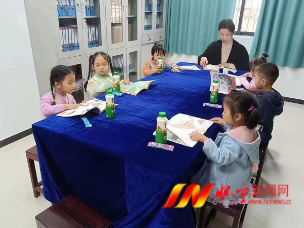 本网讯 4月23日,在小市镇良湖村新时代文明站,孩子们在工作人员陪同下阅读自己喜爱的图书,场面温馨温暖。