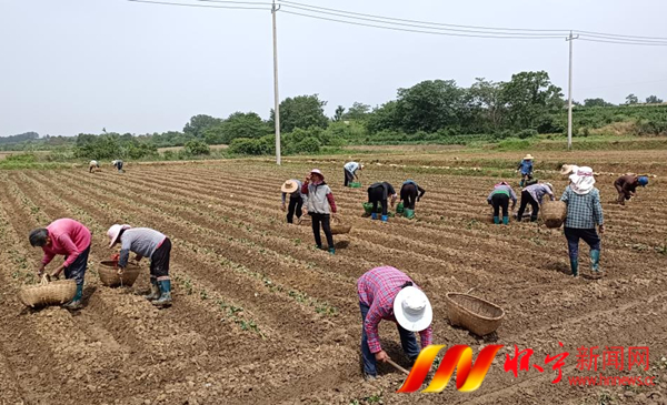 本网讯 小满至农事忙,夏收夏种正当时。在清河乡太平村和金桥村紫薯种植基地,几十名村民沿着翻好的田垄有条不紊地栽种紫薯苗,大家分工明确,有的搬运紫薯苗、有的栽秧、有的浇水,田野间一片农忙景象。