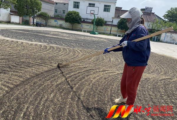 本网讯 眼下,正是农村收获油菜籽的季节,村民利用晴好天气抓紧时间正在摊晒收割后经过脱粒的油菜籽。