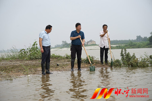 6月3日,凉亭乡干群在董祠村龙井圩芦苇洲查看水情。连日来,我县持续出现短时强降雨和连续性降雨天气,不断增加的雨量使河道水面有所上涨,农田道路面临水浸风险。面对可能出现的险情隐患,我县组织党员干部群众加强巡堤查险,做足防汛储备,积极排除险情,确保安全度汛。檀志扬 汪雯君 摄