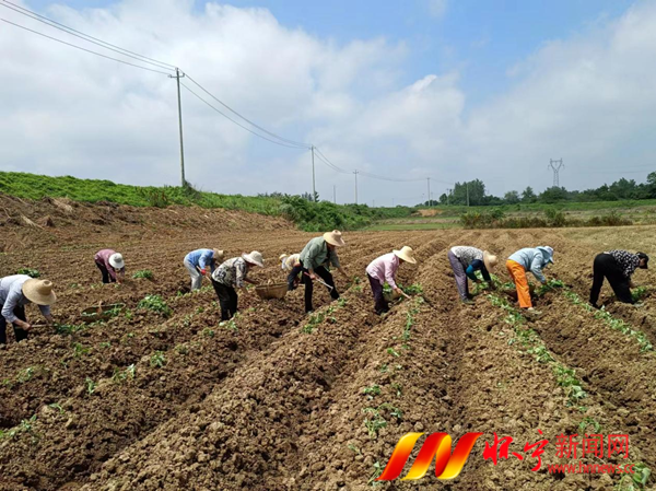 本网讯 6月6日清晨,在黄龙镇大畈村和黄龙社区紫薯种植基地,土地已翻耕完成,数十名村民正抢抓雨后天气,忙着移栽紫薯幼苗、浇水施肥,忙得不亦乐乎。