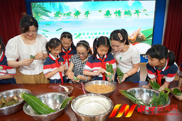 6月12日,在月山镇中心学校里,一阵阵欢声笑语传来,浸润着童声、童真、童趣,爱心老师与10多名留守孩子一起包粽子,喜迎端午节。今年端午节期间,我县各中小学、幼儿园广泛开展了“亲情端午”活动,爱心志愿者牵手、学包粽子、查阅端午习俗、分享劳动成果等活动,营造出浓郁的节日氛围,让孩子们体验传统民俗文化。同时,让留守儿童感受到家一般的温暖。 檀志扬 丁晓禄 摄