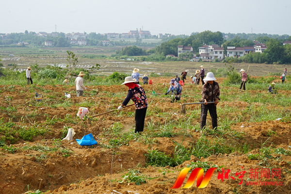 6月12日,清河乡硖石村村民在家门口油茶基地除草。近年来,该乡立足自身特色资源,大力发展农业产业,激发群众内生动力,探索脱贫攻坚与乡村振兴有效衔接,农村发展路径更宽广,农民增收致富更有效。檀志扬 陈金霞 摄