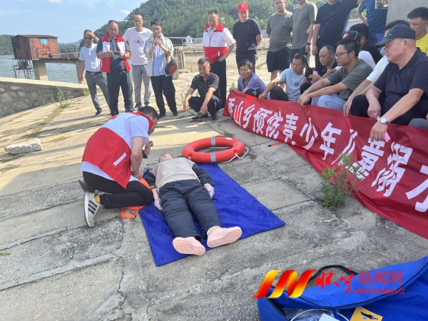 本网讯 6月28日下午,秀山乡新时代文明实践所、乡派出所、乡团委、乡关工委等相关部门在观音洞水库管理所联合开展预防青少年儿童溺水应急救援培训演练活动。各村(社区)村干代表、群众代表等50余人参加了演练培训。