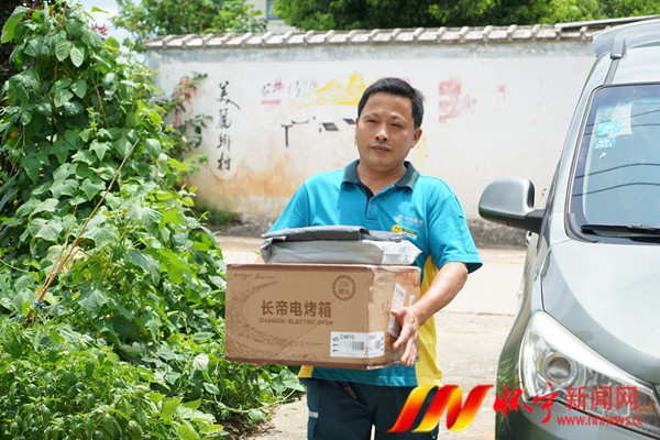 本网讯 7月3日,雷埠乡邮政所投递员何结明冒着酷暑将快递送到村民手中。盛夏来临,气温也一路飙升,室外最高温度达到38℃。为满足农村市场快递需求,我县邮政系统几十名投递员顶烈日、冒酷暑,坚持做到按客户订单及时送货,受到村民一致好评。檀志扬 摄