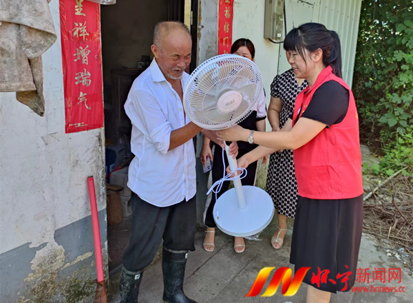 慰问组一行为老人们送去了夏凉被、电风扇、电饭煲,耐心向老人们讲解高温天气防暑降温的安全常识,仔细询问老人们在生活中是否存在困难,详细了解家庭情况,帮助解决困难问题。“太感谢你们了,我年纪大了,腿脚不好,现在你们还亲自上门把电风扇、电饭煲送到家里来,我心里太感动了!”看着他们忙前忙后的身影,育儿村老人丁松元激动地说。(通讯员 丁浩浩)
