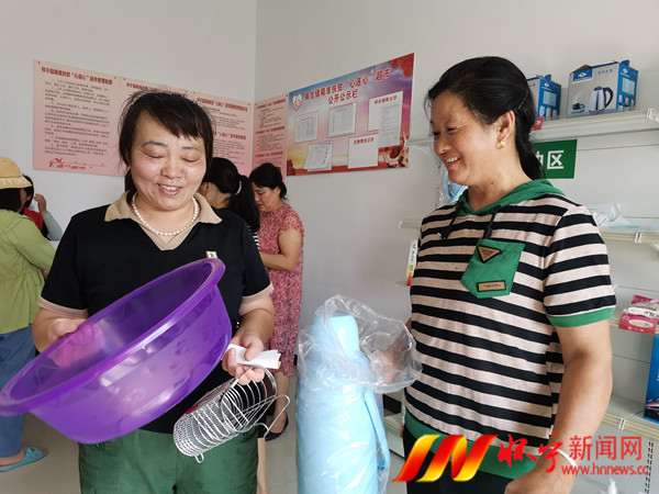 在丰园村“爱心积分超市”,货架上整齐地摆放着50余种生活用品和学习用品,每种物品下面都贴有“明码标分”标签。村民们正在货架前挑选需要的生活用品。“我挑个装菜的篮子,超市里都是家用的东西,像水瓶啊,什么东西都有,兑换的东西都很满意。”村民汪根兰说。