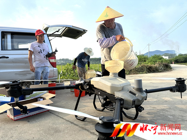 8月17日,平山镇平山社区专业植保员吴结如指导和帮助农民开展水稻病虫害防治,并利用植保无人机对稻田进行“飞防”作业,确保水稻增产农民增收。檀志扬 操振东 摄
