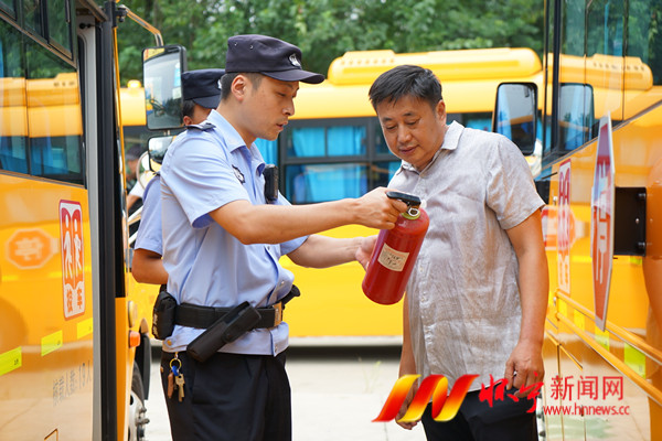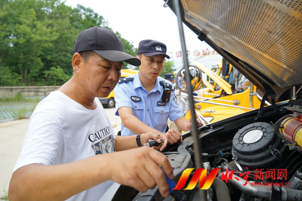 本网讯 8月27日,在江镇镇中心学校,江镇派出所民警和学校安全员对校车进行安全检查。新学期开学在即,我县城乡学校对校车开展安全专项大检查,对校车信息资料、司机驾驶资格、安全性能和随车配备的安全应急器材设备等进行检查,消除校车安全隐患,确保学生乘车安全。秋季学期,我县对县域内校车服务全覆盖,实现校车村村通,近120辆校车解决5000余名学生就学交通问题,办成了一项群众期盼的民生实事。檀志扬 占新海 摄