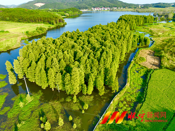 9月9日,航拍下的雷埠乡红树林景区。雷埠乡充分发挥绿色生态优势,以生态产业化为抓手,打造金鸡岭水库、红杉林景区旅游、观光、垂钓、休闲、养生为主题的旅游综合体,有力促进了乡村振兴。近年来,我县牢固树立“绿水青山就是金山银山”的绿色发展理念,坚持生态优先、绿色发展,努力把生态优势转化为产业优势、发展优势、竞争优势,如今的怀宁城乡正用“生态画笔”勾勒出一幅天蓝、地绿、水清的美丽画卷。檀志扬 陈首君 摄