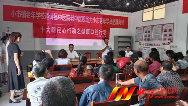 在小市镇老年学校,中医专家们为群众开展了健康知识讲座,讲座结束后,专家们为前来参加义诊的群众现场进行把脉问诊。“这次义诊活动搞得非常好,我们老百姓不出远门就能享受到高质量的中医诊疗服务,给我们带来了真正的实惠和方便。”村民黄曙光说。