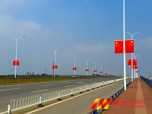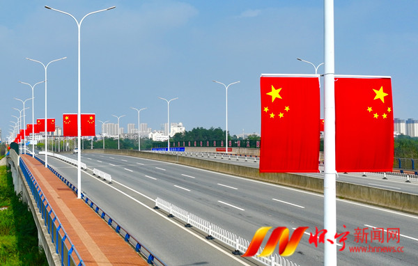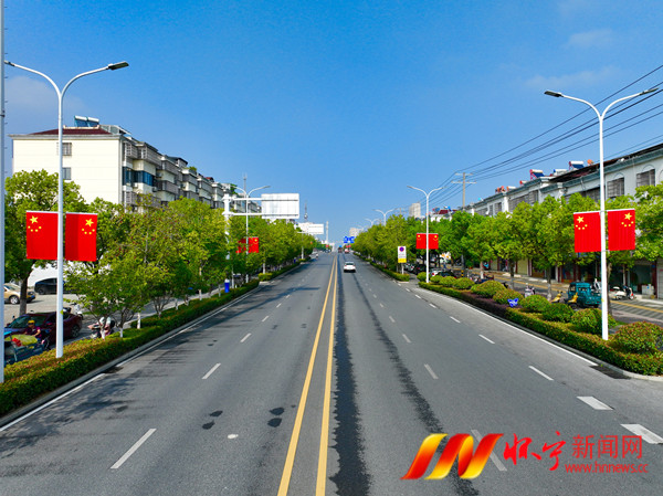 秋高气爽迎国庆,气氛欢腾庆佳节。国庆节将至,高河镇城区装扮一新,街道、广场等地已悬挂起国旗,打造花街、花道、花海等景观,满城洋溢着“中国红”,营造出喜庆祥和的节日氛围。檀志扬 陈首君 摄