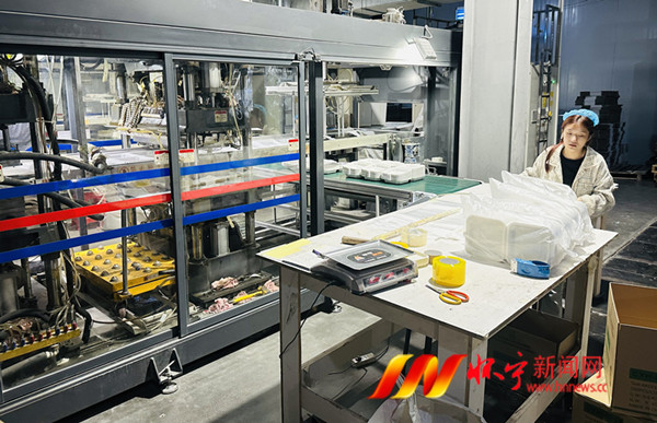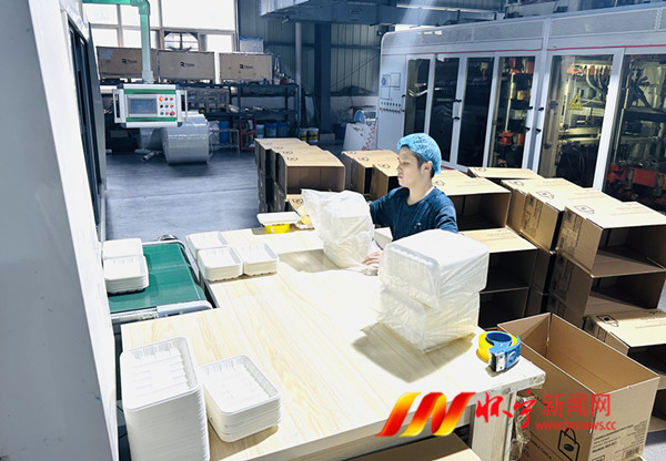 10月7日,在马庙镇工业园区内的双羽新材料有限公司,员工在加紧生产出口可降解环保餐盒。国庆长假后,我县各大企业开足马力忙生产、赶订单,千方百计推进企业满产,奋力推动完成全年经济目标。檀志扬 丁浩浩 摄