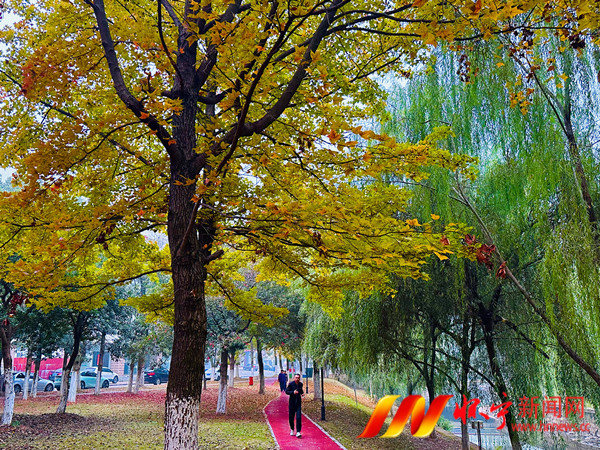 10月28日,金秋时节,高河镇城区前进河绿道两侧树木或黄或红或绿,层林尽染,色彩斑斓,美不胜收,构成一幅绝美秋色图。近年来,当地坚持走“生态优先、绿色发展”道路,以创建文明城市为抓手,打造生态公园,提升城市品质,增强人民群众的获得感、幸福感。檀志扬 刘晓勇 摄