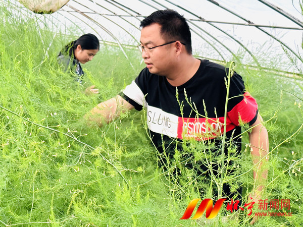 10月26日,村民在大棚查看芦笋长势。石牌镇邵塅村引进农业企业种植芦笋260余亩,在增加村级集体经济的同时,带动本地百余名剩余劳动力在家门口就业增收。石牌镇是皖西南重要的农副产品集散地,种植蔬菜面积近2万亩,走出了产业振兴新路,鼓起群众“钱袋子”。檀志扬 张润芳 摄