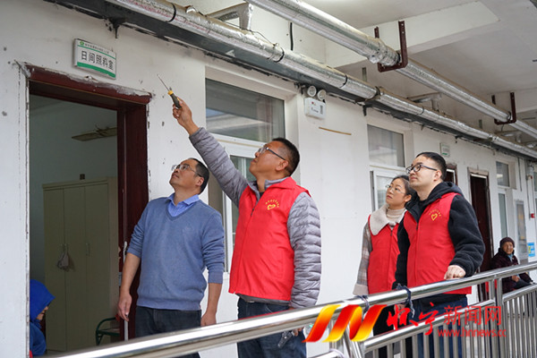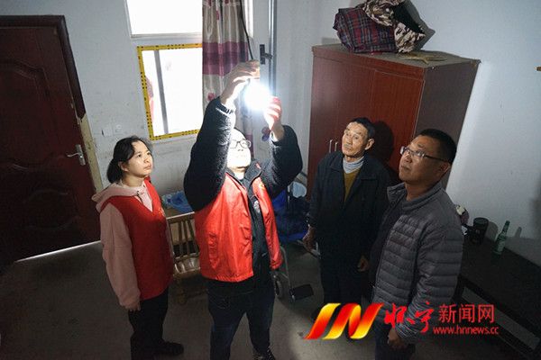 11月22日,雷埠乡青年志愿者走进敬老院,检查室内用电线路、开关,并一再叮嘱老人冬季用电安全的注意事项。入冬以来,针对农村老人年纪偏大,部分老人行动不便,有些缺乏用电安全常识,雷埠乡成立青年志愿者服务队,进村入户到留守老人家中检查、宣传用电安全,帮助消除用电安全隐患,确保留守老人安全、温暖过冬。檀志扬 殷俊 摄