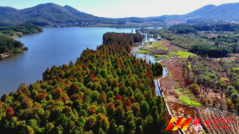 2000多株水杉错落有致地生长在水库的东侧,树干笔直,状如雨伞。入冬后,红杉的枝叶逐渐由绿色变为红黄色,湖泊的蓝色与红杉的红色交相辉映,形成了一幅浓墨重彩的山水诗画。看着红杉林,听着鸟鸣声,给人一种置身于仙境、沉醉于大自然的静谧之美。