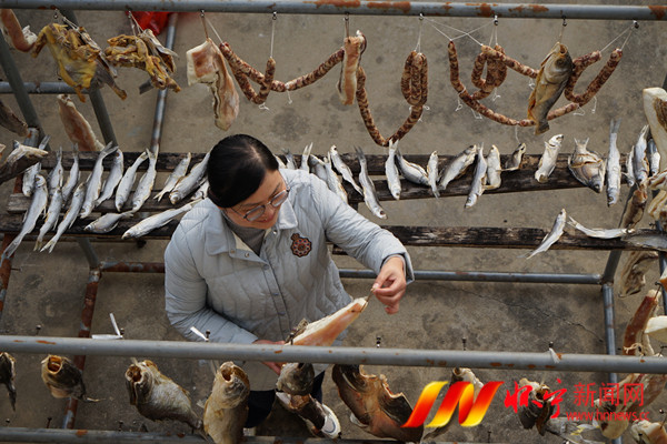 12月4日,清河乡太平村村民李吉平家的院落里晒满了腊鱼、腊肉、土鸡、土鸭等腊货,志愿者在现场网上带货直播。每到腊月,当地村民都有腌制各种腊肉习惯,除自己食用外,还销往全国各地。县、乡、村充分运用电商、自媒体等媒介,推销当地腊货,每天订单爆满,打开了农产品多渠道销路,带动农民增收,助力乡村振兴。檀志扬 陈金霞 摄