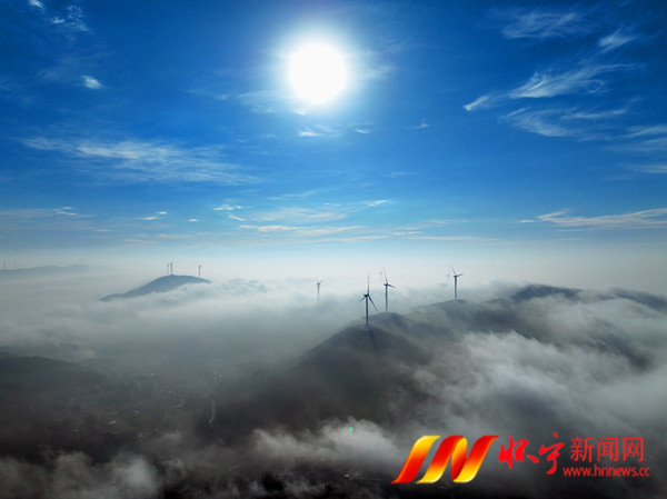 冬日里,石镜乡海螺山出现云雾景观,团团云雾随风飘荡,变幻万千,美轮美奂。云雾中,转动的风电机组在云海和山巅之间若隐若现,气势磅礴。石镜乡境内共有25台风电机组,每年可产生经济效益1.25亿元。山脚下,云雾笼罩的村庄里,百亩草莓园迎来采摘季,吸引众多游客前来观赏美景,享受“莓”好时光。 包俊根 余涛 丁宇轩 摄