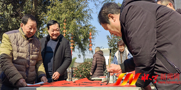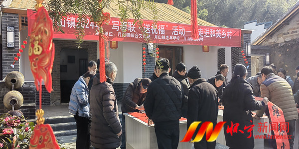 本网讯 翰墨迎新春,龙年送祝福。春节临近,在月山镇复兴村,红纸铺满桌面,墨水飘香四溢,文化志愿者们执笔、蘸墨、匀墨、落笔,挥笔写下寓意着吉祥如意、寄托祝愿的对联,营造喜庆祥和的节日氛围。