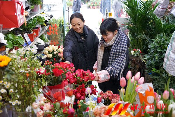 1月29日,在石牌镇一家花卉店里,不少市民前来挑选鲜花、绿植。随着春节临近,当地不少花卉产业园结合市场需求,精心准备盆栽花、观叶植物、盆景等各类商品近千种,吸引广大市民选购,花卉市场呈现产销两旺的好势头。檀志扬 潘庆谊 摄