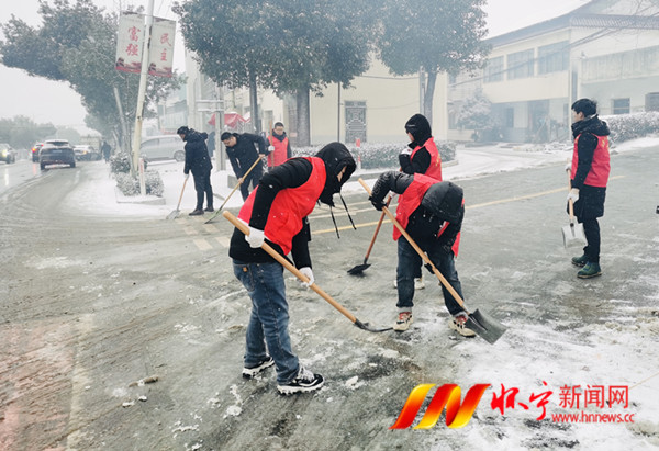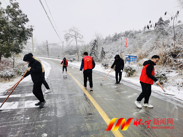 2月6日,石镜乡境内突降大雪,当地乡村干部和志愿者第一时间上路,用铁锹、扫帚、雪铲等工具及时清扫国省道和乡村道路冰雪,为过往车辆和居民的安全出行保驾护航。檀志扬 陈一良 摄